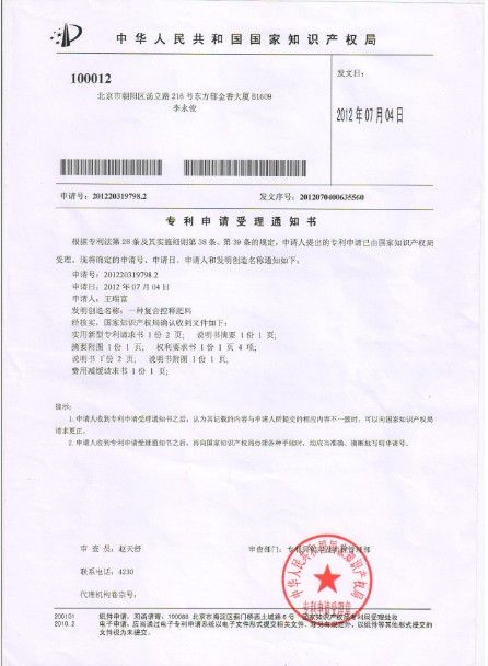 国家知识产权专利申请受理通知书